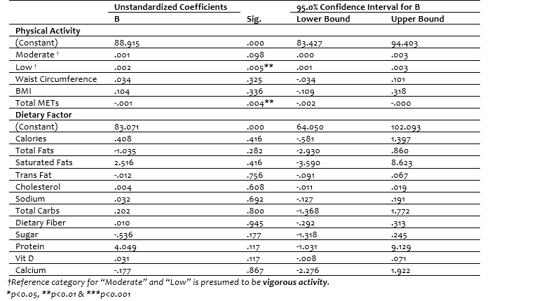 Table 1: Association Between Physical Activity and Dietary Factors with BSR