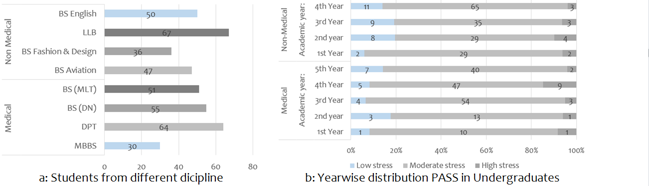 Figure 2: discipline wise abd PASS Frequency distribution of Undergraduates