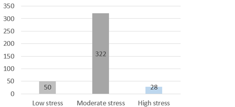 High levels of perceived Academic stress were present in n=16 medical students and n=12 non-medical students. A moderate level of Perceived academic stress was found in n=164 medical students and n=158 non-medical students while a low level of perceived academic stress was found in n=20 medical students and n=30 n0n-medical students. The overall distribution can be seen in Figure 3.